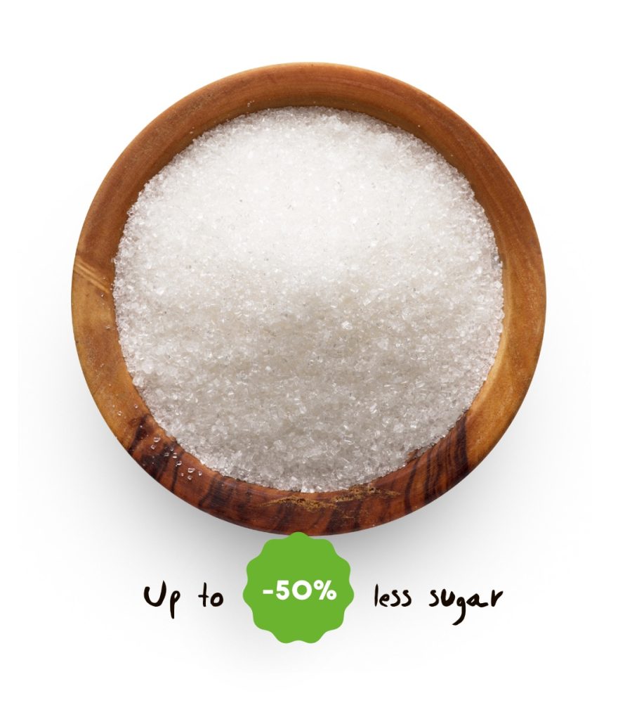 In the context of the recent implementation of the Nutri-Score scales, these two solutions, with equivalent flavor signatures, enable a product to move from a D to a B score.
